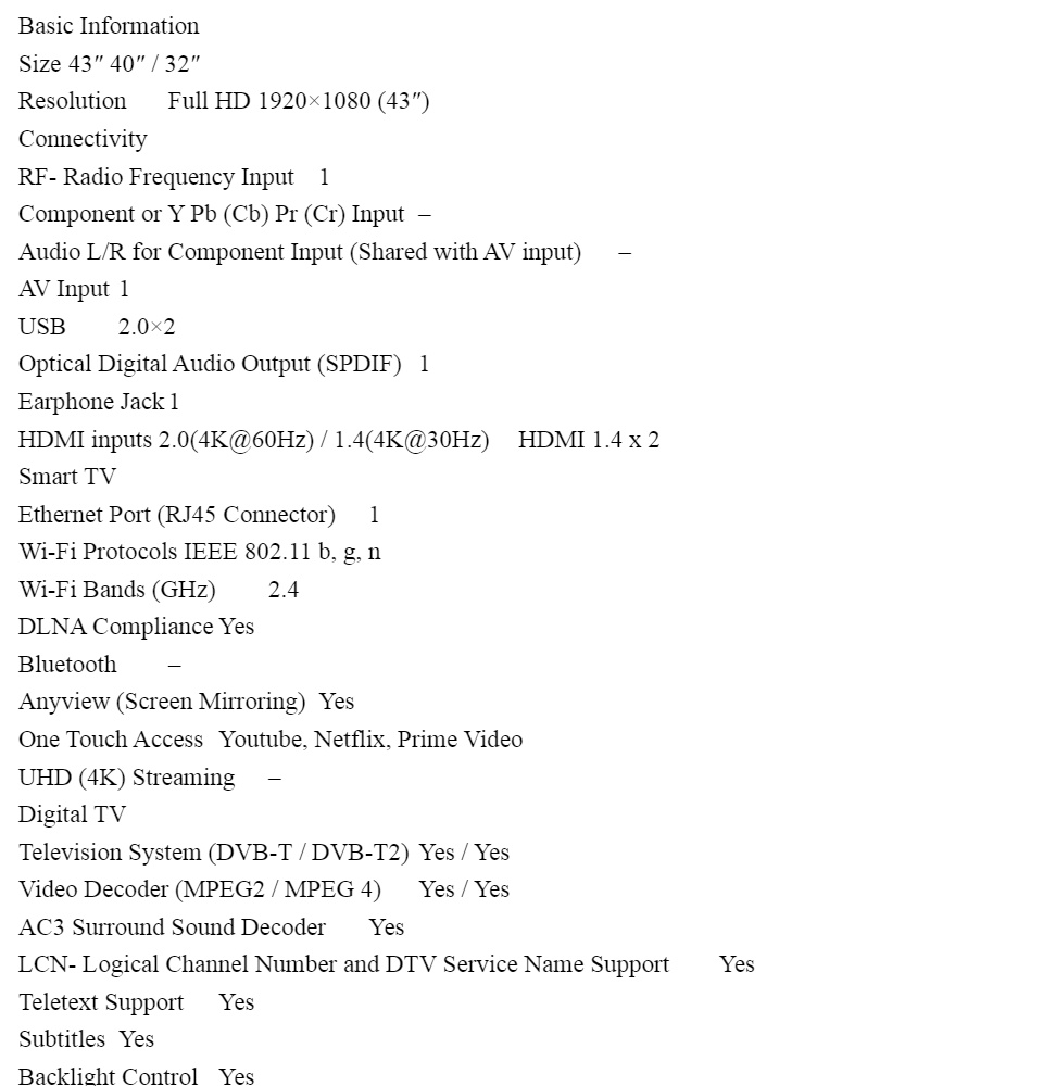 (Free Shipping) Hisense 43" Full HD Smart LED TV 43A4000H (Free Bracket + HDMI Cable)