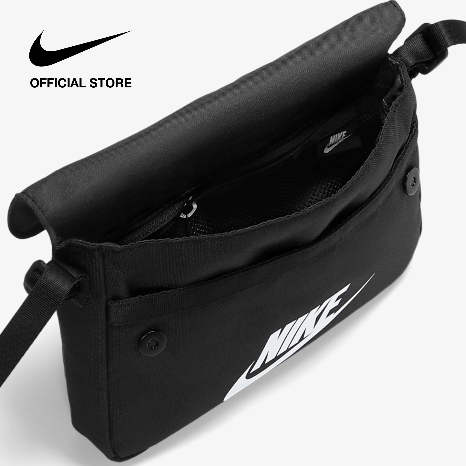 A clean design that fits your style and your essentials, the Nike Sportswear Revel Crossbody Bag features a zipper back pocket and magnetic flap close. It's made from fabric that contains a blend of at least 75% recycled fibers.