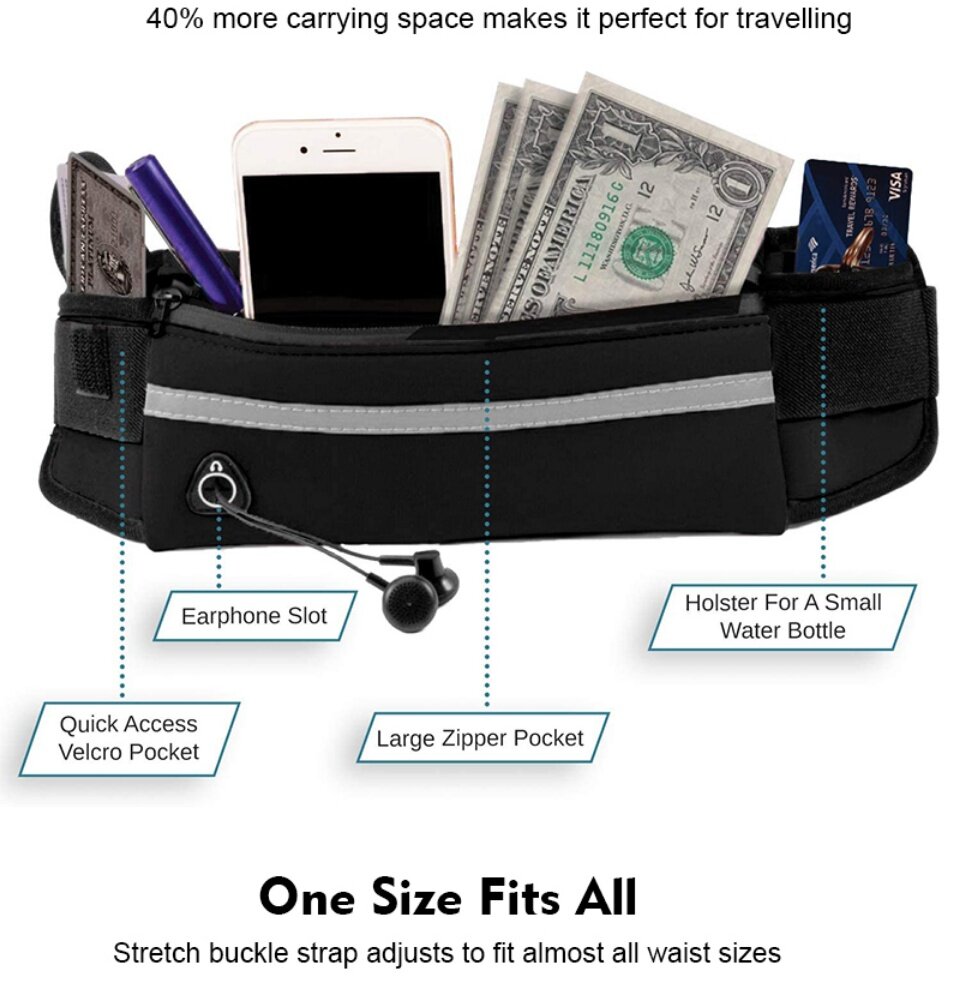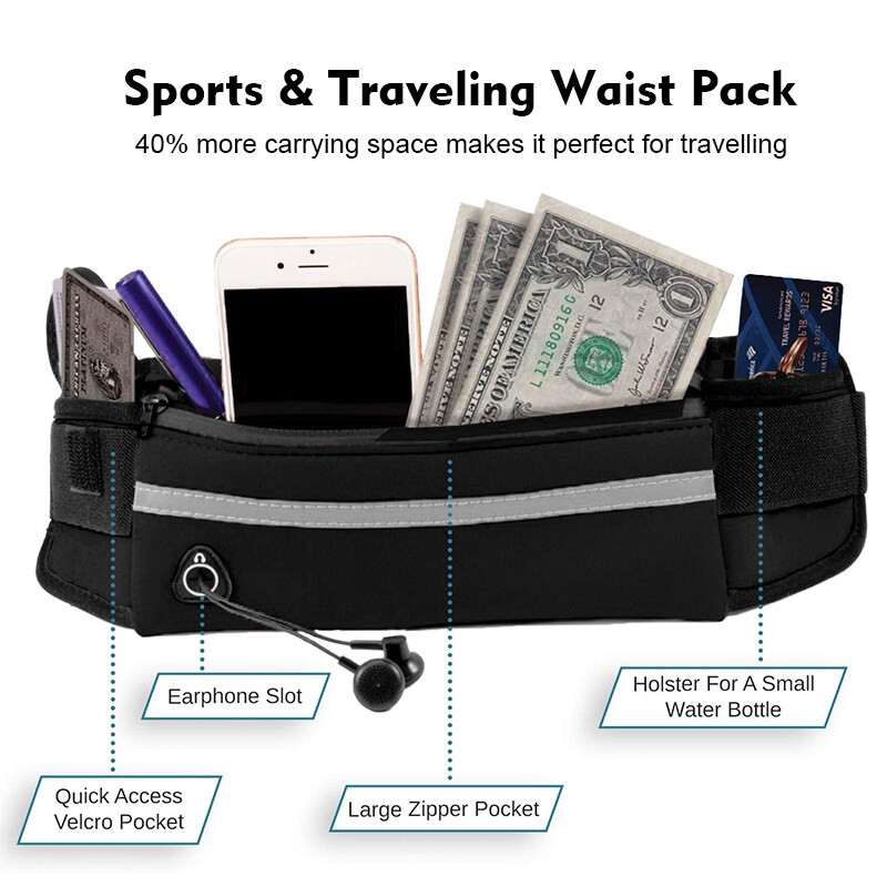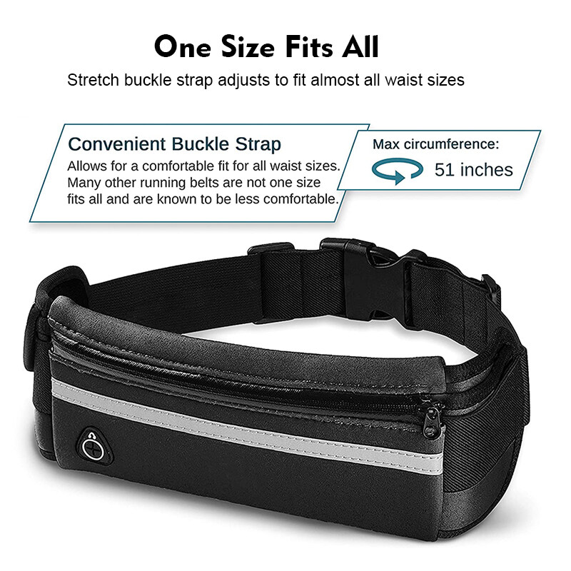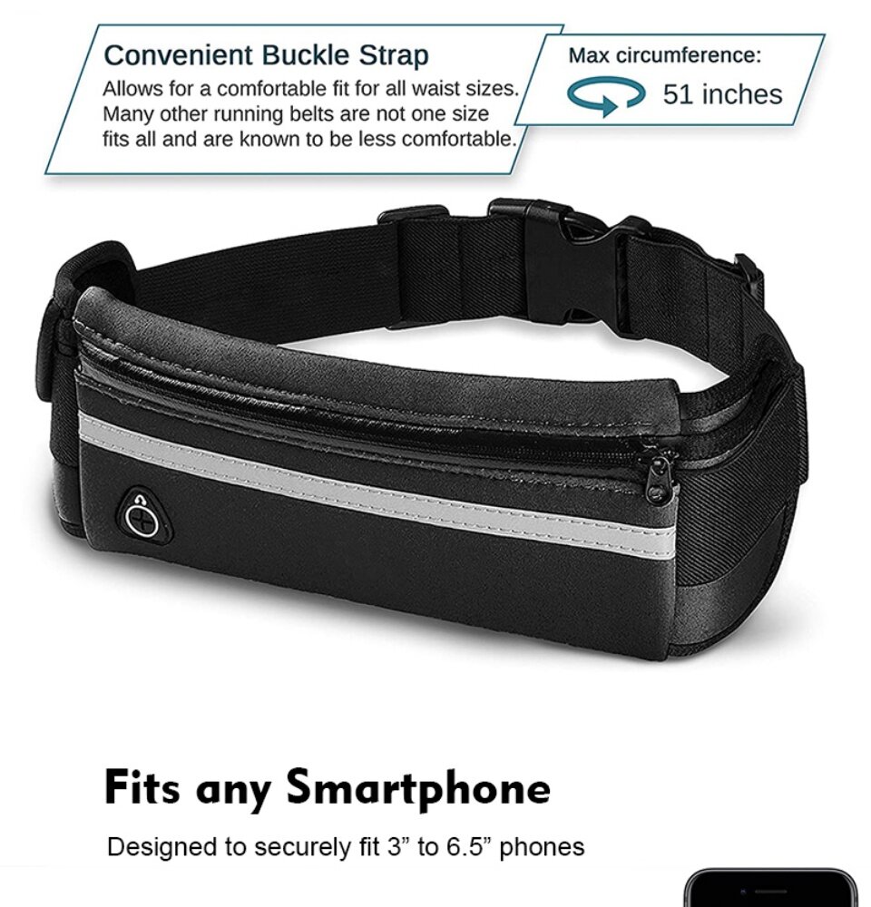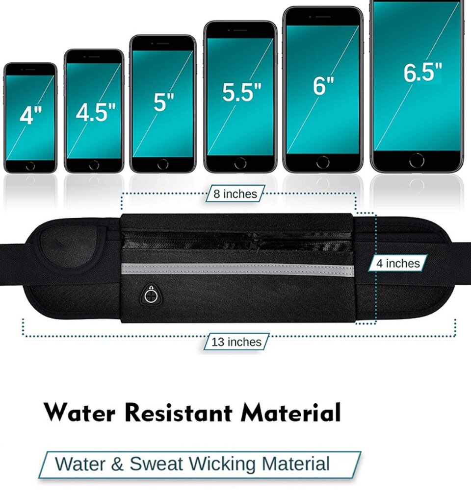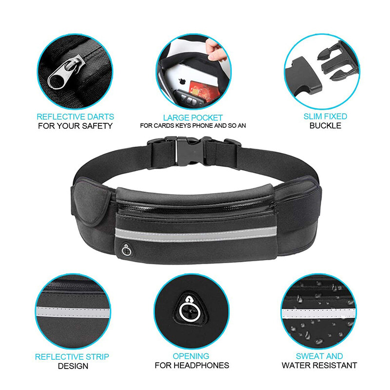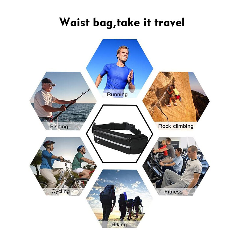 Running Waist Pouch Bag Unisex Waterproof 6.5Inch Phone Storage Bag Outdoor Sports Gym Cycling Sealed Zipper Waist Belt