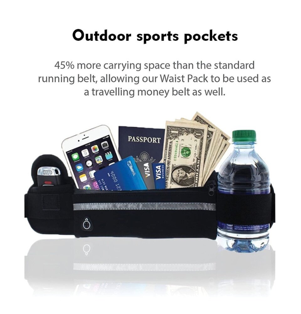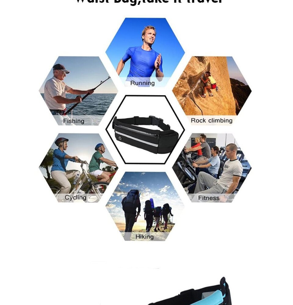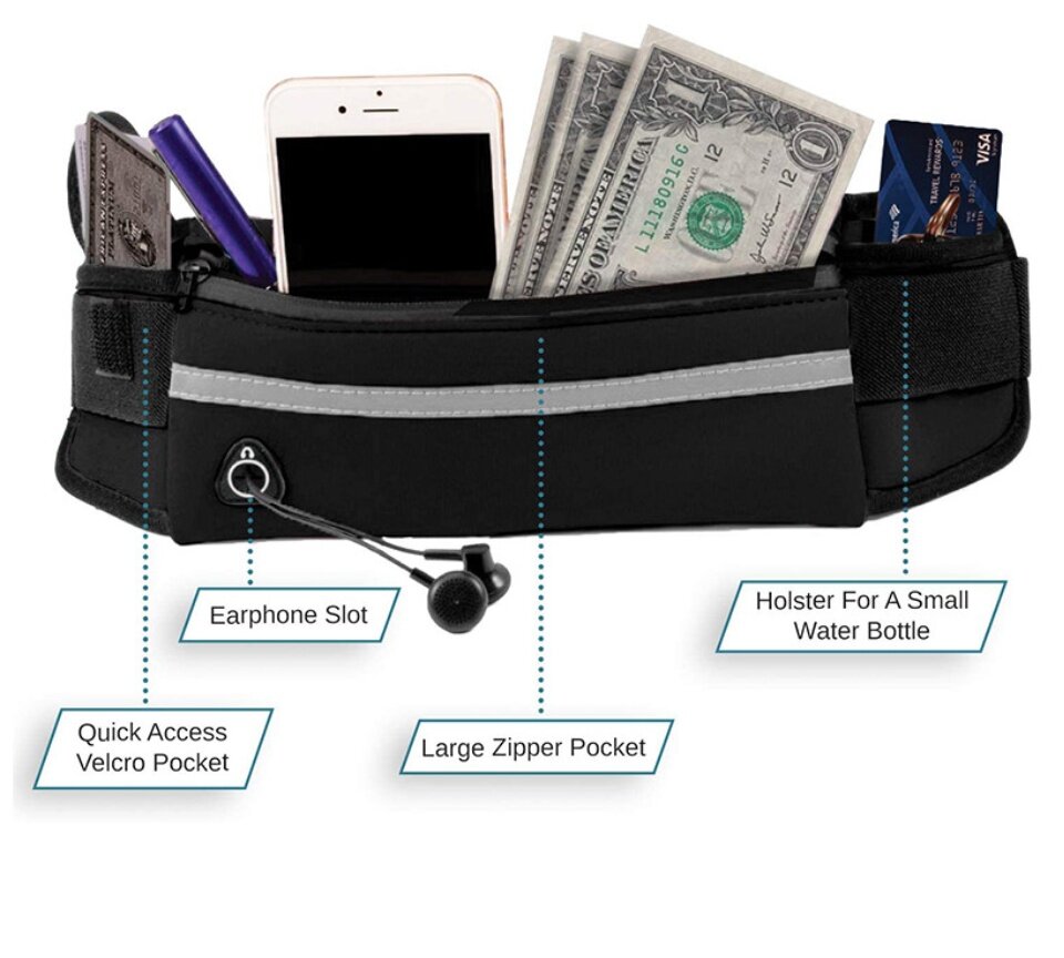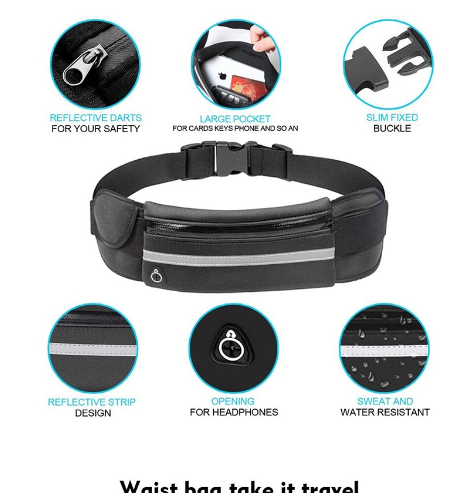 Sports Waist Bag Fitness Running Bag For Men women 6.5Inch Phone Storage Bag Outdoor Sports Belt Pouch Wallet with Bottle Holder Cycling Bag Waterproof Anti-theft Sport Bags Personal Zipper Waist Belt